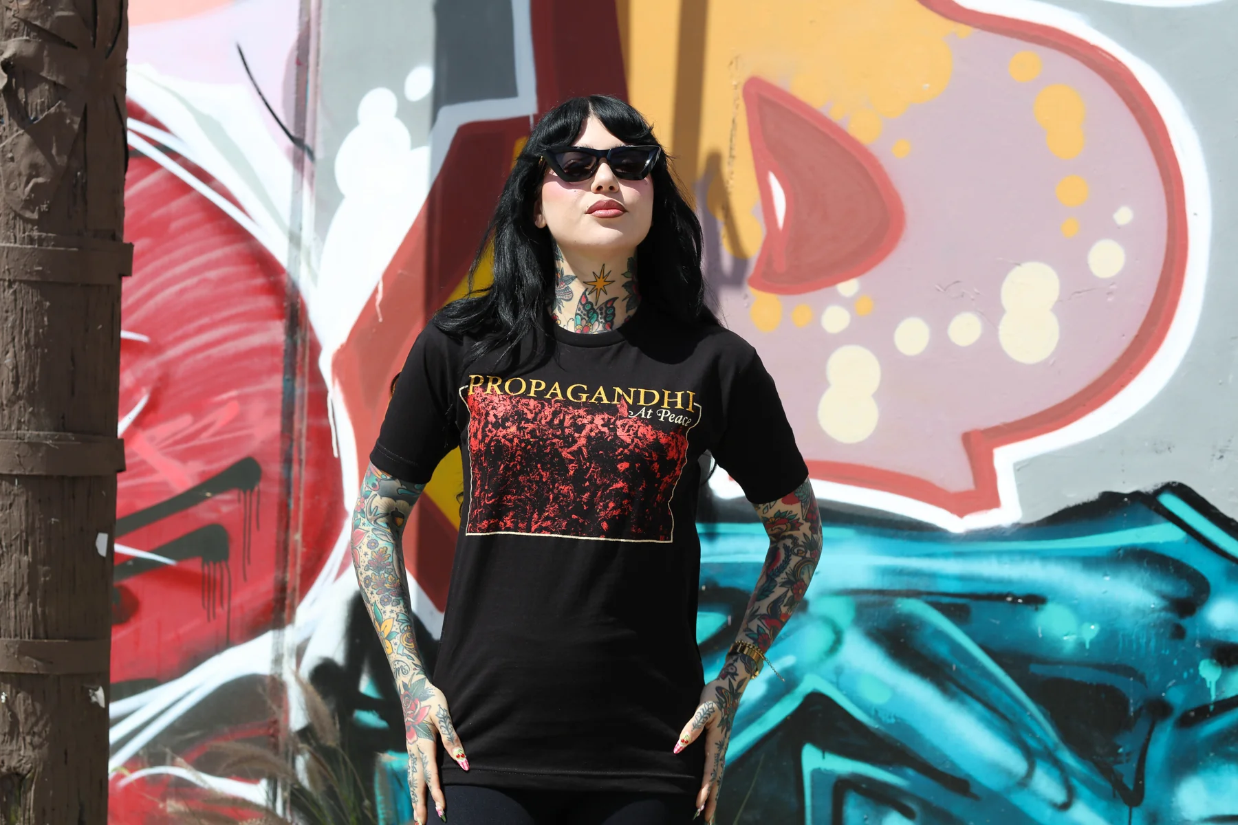 The Propagandhi At Peace Album design, printed on a comfortable, standard-fitting black t-shirt.